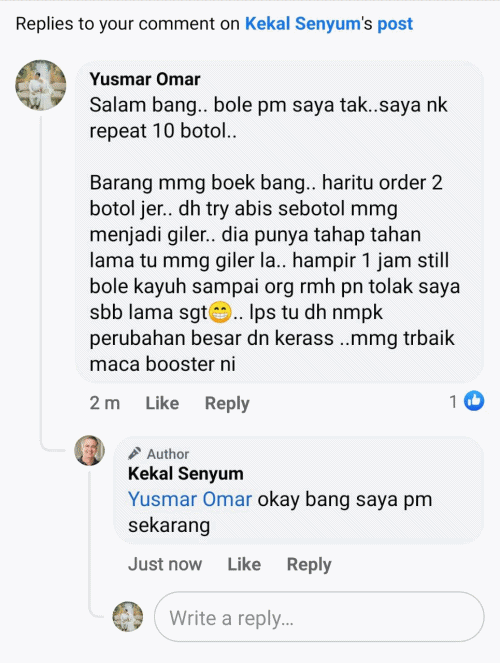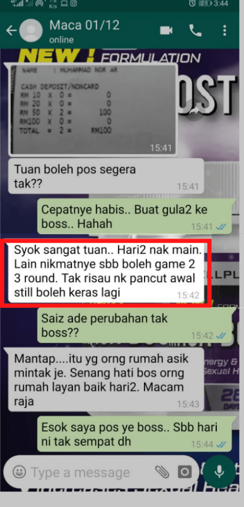 abang jangan risau kami ada harga diskaun untuk abang. Kita lelaki bang mesti la tahu apa yang abang hadapi. Jadi kami nak semua lelaki di malaysia nie dapat selesaikan masalah yang dihadapi. Tetapi harga ni bukan sampai bila-bila tau..